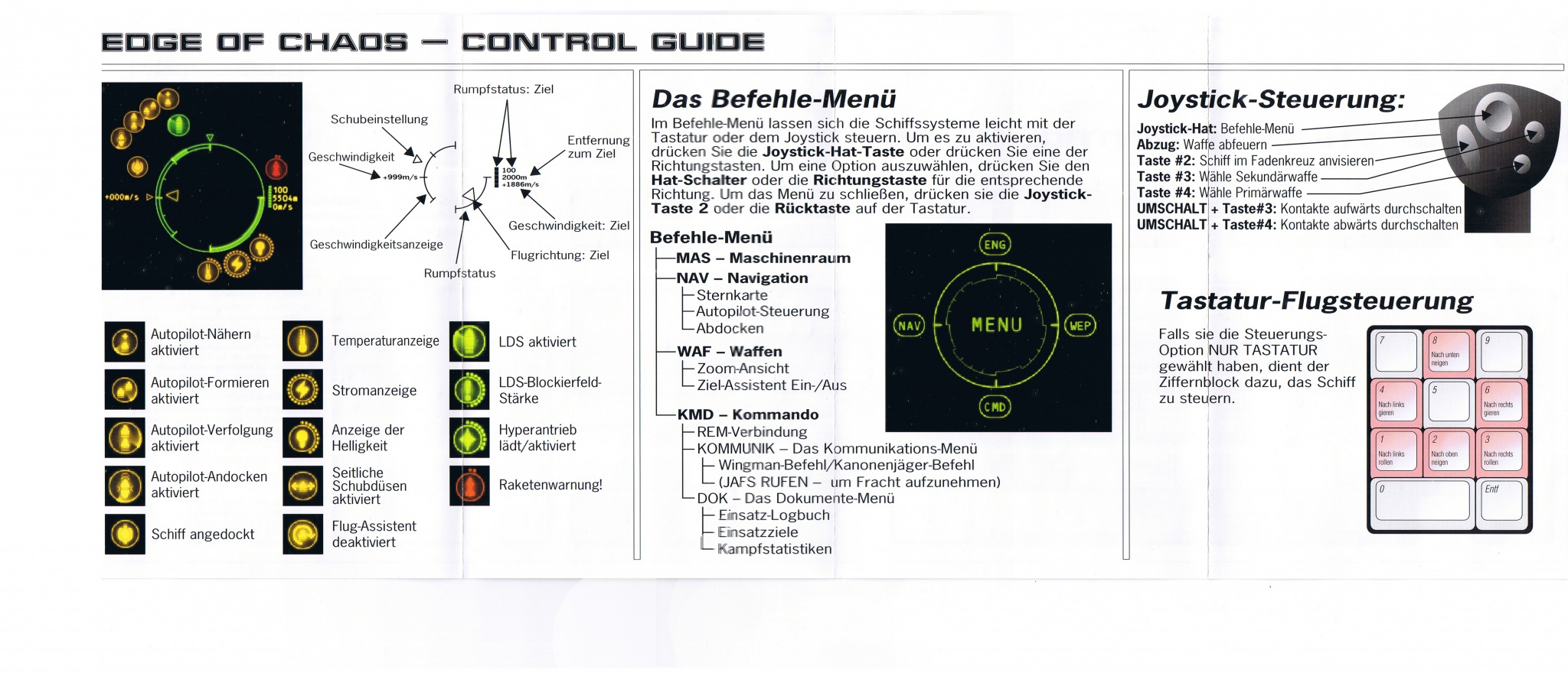 I-War 2 Joystick-Referenzkarte (deutsch)
